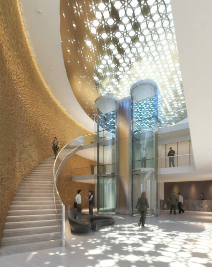Das Hotel, dass eine Fläche von 10.000 m² einnehmen wird, soll über ein großes Kongresszentrum mit einem Konferenzraum von 570 m² sowie mit Räumen für Unterkommissionen verfügen. Angegliedert sind ein Radio- und Sendestudio sowie ein Spa-Zentrum mit Hammam und Innenpool. Für das leibliche Wohl sorgen drei Restaurants.
